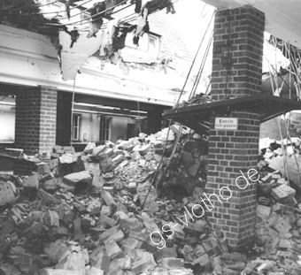 Erhebliche Schäden an den Gebäuden, außen und innen.