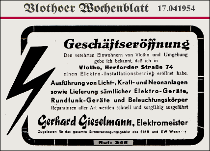 beschäftigt. Als Gerhard Gieselmann 1953 sein Gewerbe anmeldete, gab es